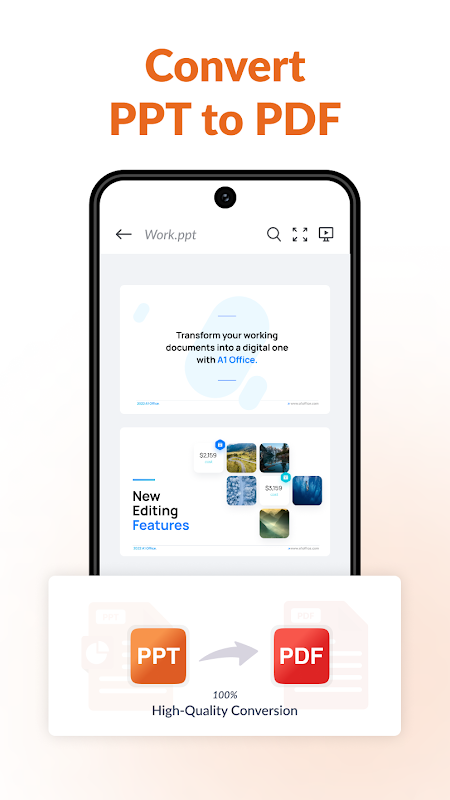 PowerPoint Editor-PPT Editor ialah aplikasi pejabat yang membolehkan anda membaca dan melihat dokumen dengan mudah pada peranti mudah alih. Kami disokong untuk membaca dokumen jenis pptx. Buka nota tugas pejabat dan kuliah sekolah anda pada telefon anda dengan mudah dengan satu klik pada prestasi dokumen ini kerana anda boleh membuka helaian data anda yang dibuat pada fail ppt dan dokumen perkataan. Terokai Telefon Bimbit anda dan cari fail seperti fail berformat teks, fail ppt untuk melihatnya pada telefon android anda. Aplikasi Editor PowerPoint-PPT Editor untuk android secara percuma ini akan menjimatkan memori telefon anda.