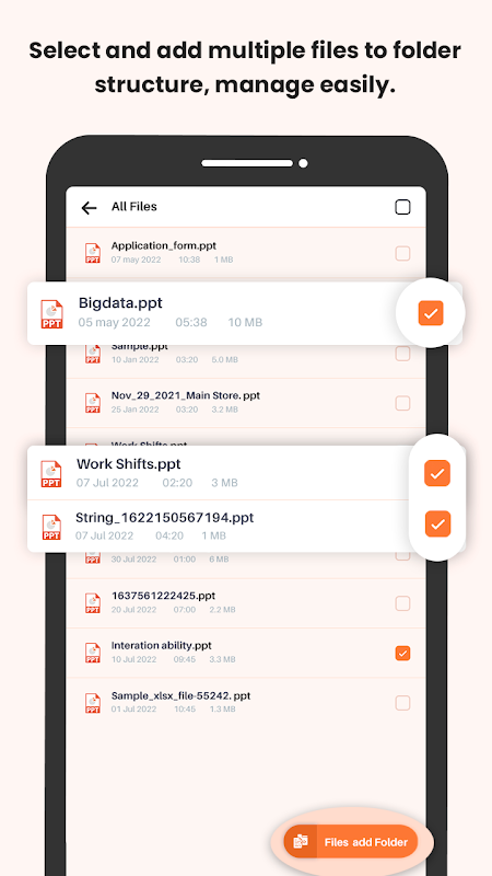 Imbas dan senaraikan semua fail PPT & PPTX yang disimpan pada peranti anda secara automatik.