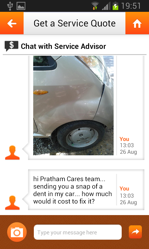 * Live Quote: Click a snap of any problem you have with your car and the Pratham Cares team will get back to you with a solution!