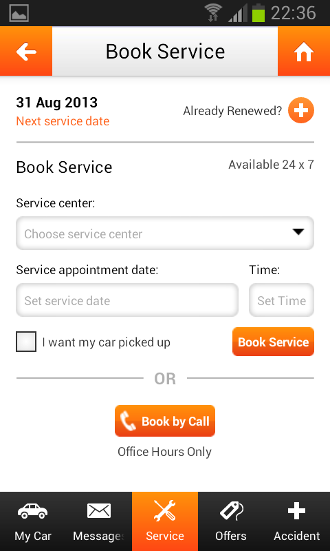 * In-App Book Service: Now book a car service appointment by simply indicating the location and time of your choice. You can request for a car pick-up as well!