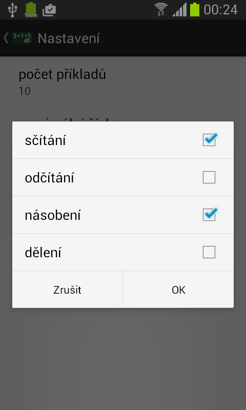 Pokud jsou všechny příklady vypočteny správně, přehrává zvolený audio soubor.