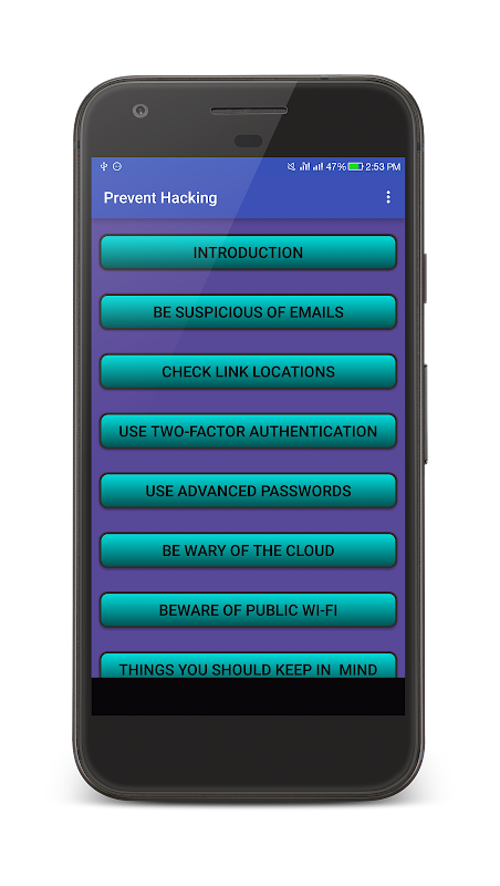 Dalam aplikasi ini, terdapat pelbagai langkah-langkah yang perlu anda ambil untuk mengelak daripada digodam.!
