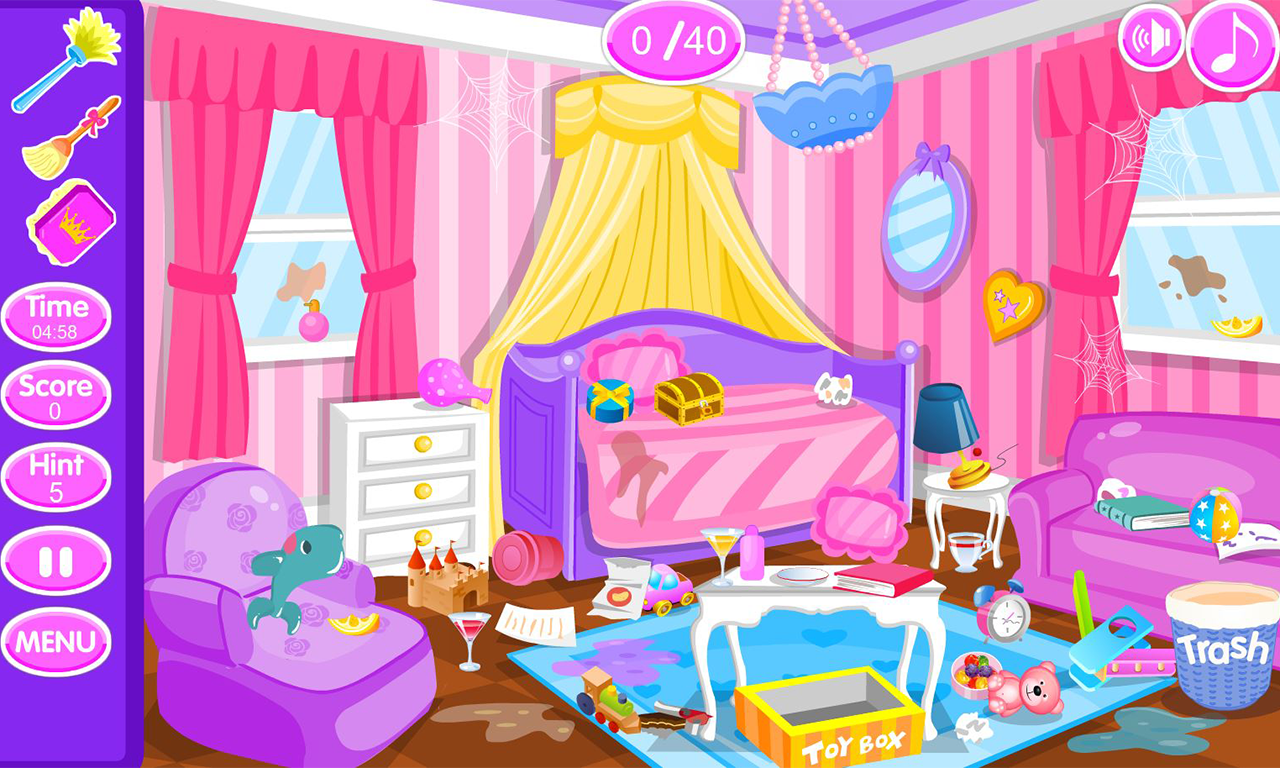 When working for royalty sometimes they can be messy especially when it comes to a princess. With this little princess cleanup game you can have fun cleaning up your princess’s room or your castle ready for her return. Here you can straighten the furniture, lights and wall hangings, clean the cobwebs, rearrange her dolls and other items, as well as throw the rubbish away, scrub the stains, sweep the floors and so much more! So if you want a challenge and test your cleaning skills, why not have a go with this princess room clean up game and see if you have what it takes to work for royalty.
