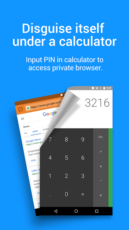 Pelayar Peribadi ialah penjaga privasi terbaik dalam penyemakan imbas web. Penyemak Imbas Peribadi boleh menyamar sebagai kalkulator pada telefon anda dan apabila anda memasukkan PIN anda dalam kalkulator ia bertukar kepada pelayar berciri penuh dengan kelajuan super.
