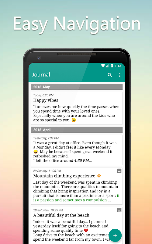 - Swipe left/righ to navigate between journal entries.