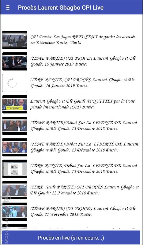 Application CPI procès Laurent Gbagbo pour vous permet de suivre et de ne rater aucune audience du procès Laurent Gbagbo et Blé Goudé. Ne vous faites plus conter ce procès, il vous suffit de faire un clic et vous avez ainsi accès aux différentes salles d'audience de la CPI.