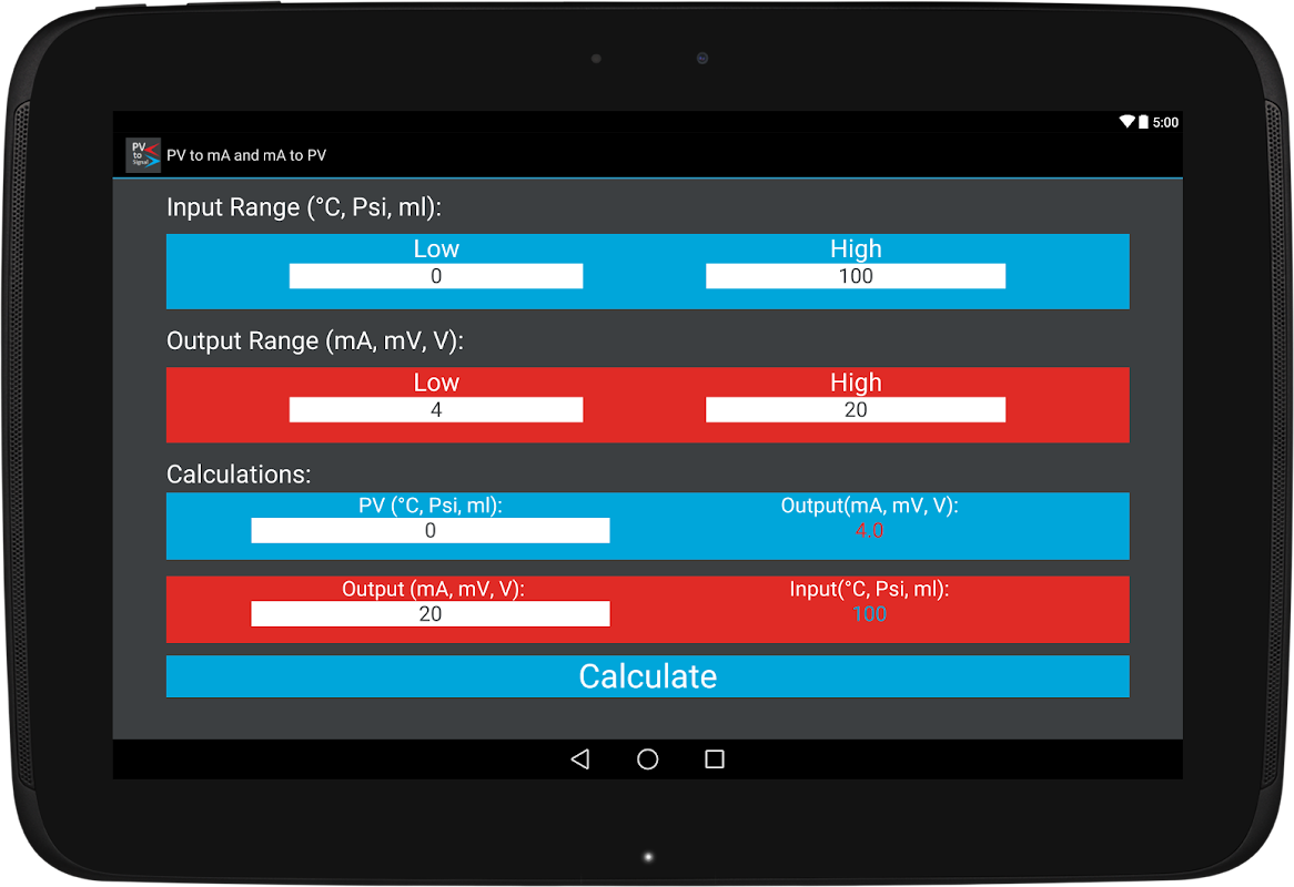Status Instruments 'percuma App untuk menukarkan nilai isyarat proses, di mana-mana unit kejuruteraan, menjadi isyarat kawalan di Penguat mili, volt mili, atau volt.