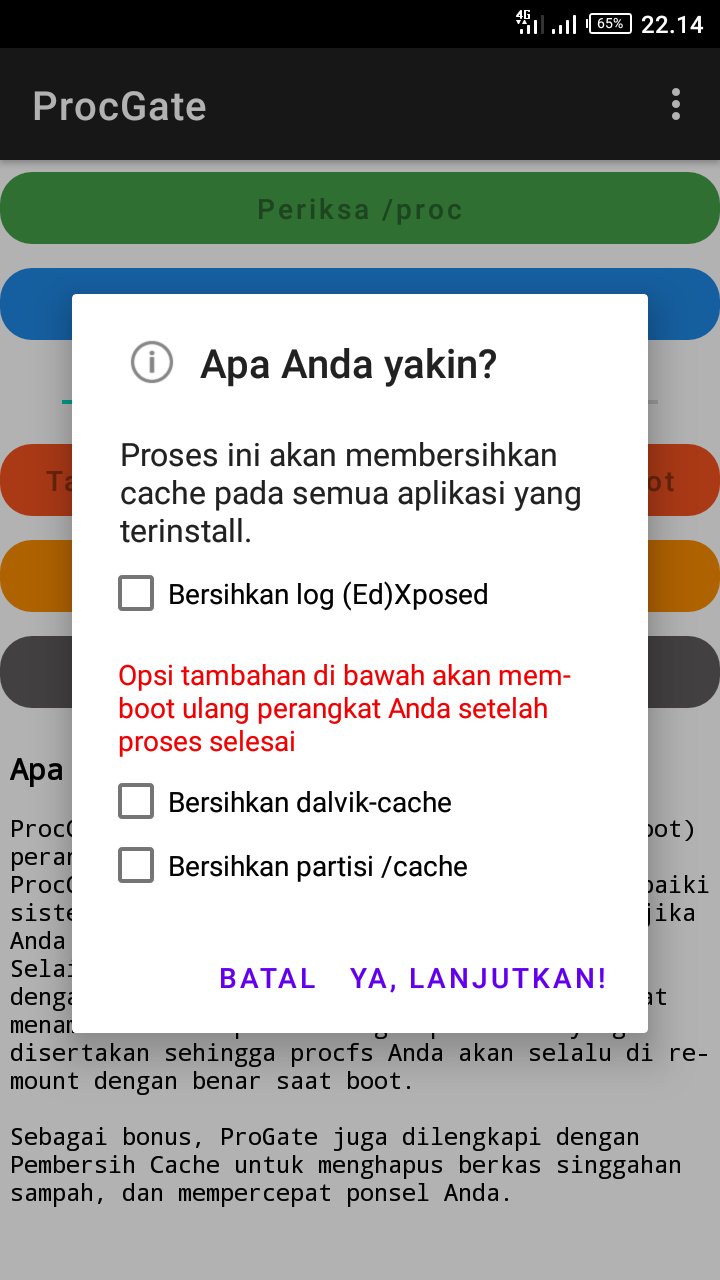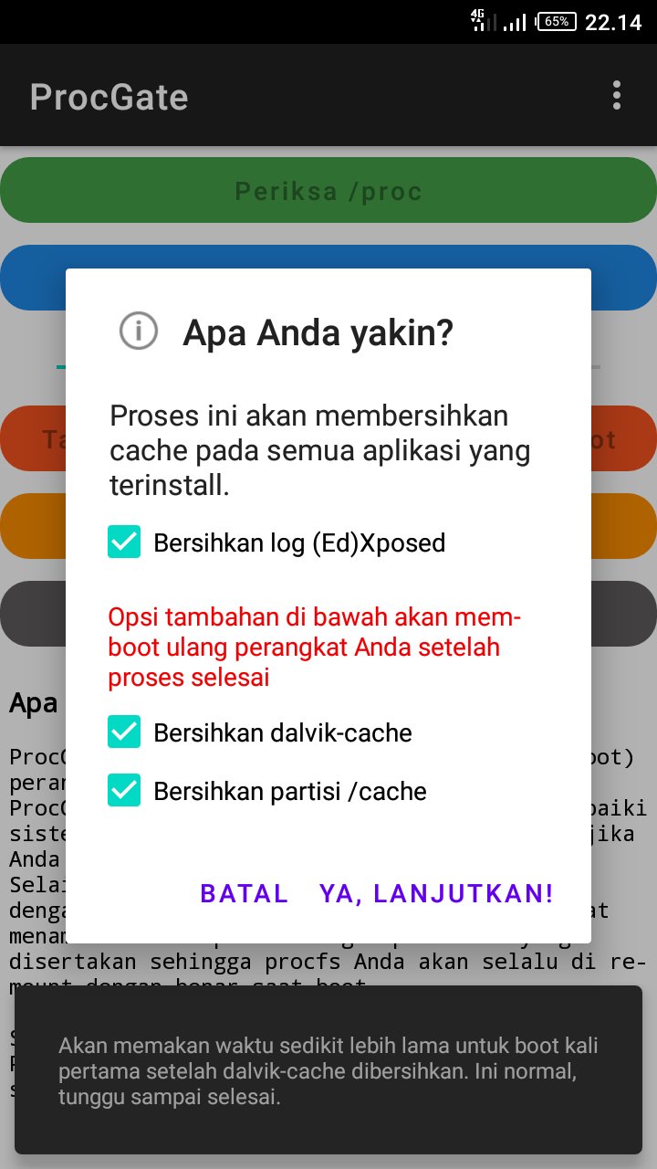 Selain itu, jika perangkat Anda sudah di-root dengan Magisk atau SuperSU, ProcGate juga dapat menambahkan skrip boot dengan perbaikan yang disertakan sehingga procfs Anda akan selalu di re-mount dengan benar saat boot.