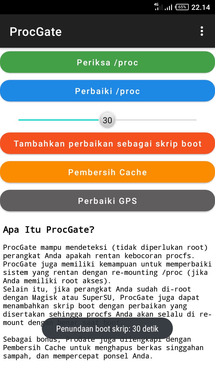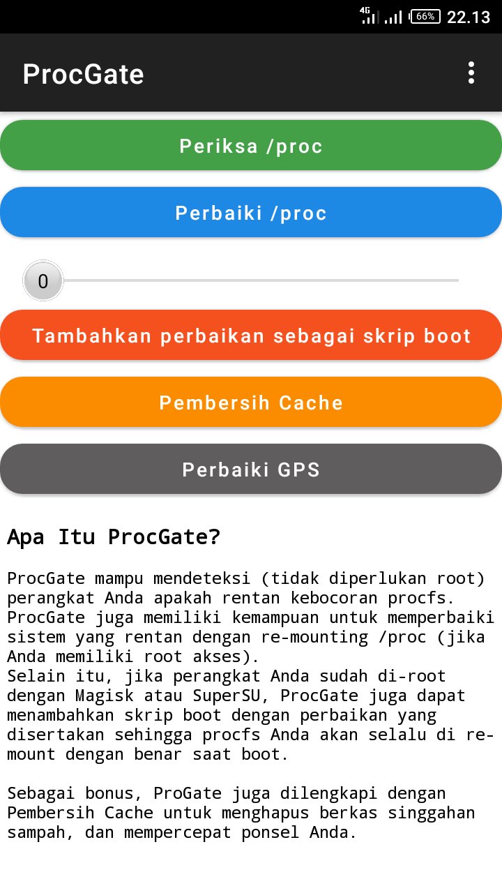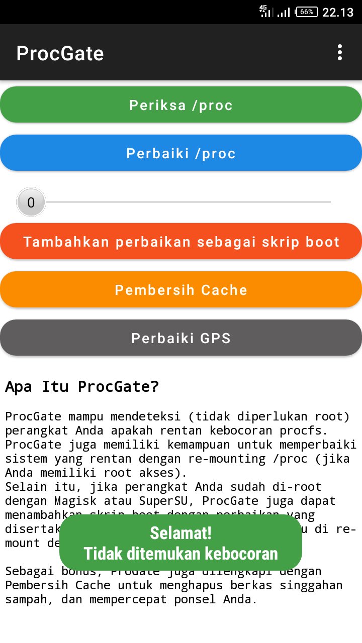 ProcGate mampu mendeteksi (tidak diperlukan root) perangkat Anda apakah rentan kebocoran procfs.