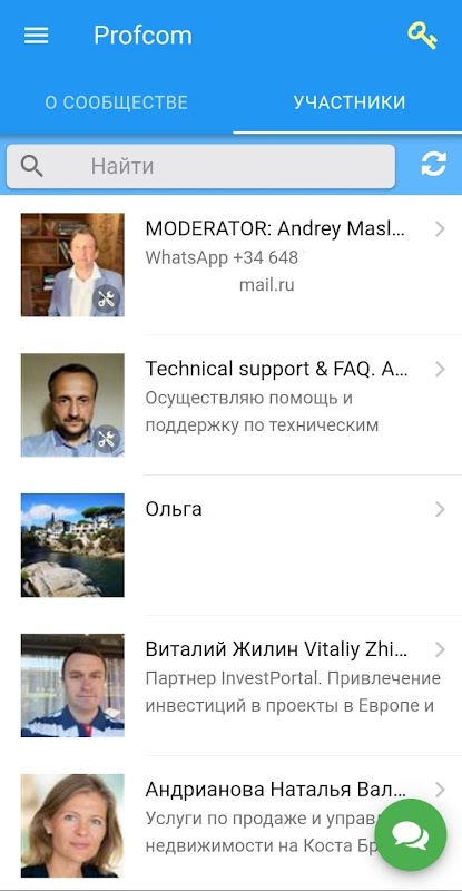 ProfCom (komuniti profesional dan rangkaian) adalah alat untuk pembangunan komuniti. Ia berguna untuk penganjur mesyuarat dan acara perniagaan dan swasta, kesatuan, persatuan, kelab, saluran telegram, kumpulan dalam rangkaian sosial, siaran dalam talian di Zoom, YouTube, Skype, dll.