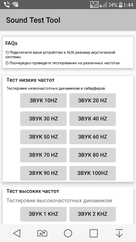 the program of testing of acoustic systems.(speakers, tweeters, subwoofers ...)