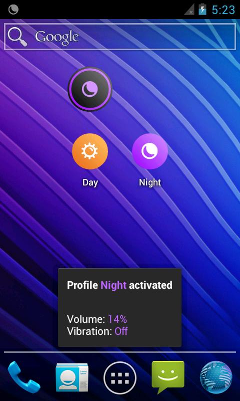 The profiles can be activated both from the app itself and from the home screen widget provided. To add the widget, you just have to long press on an empty space on the desired home screen and select Widgets -> Profile Widget.