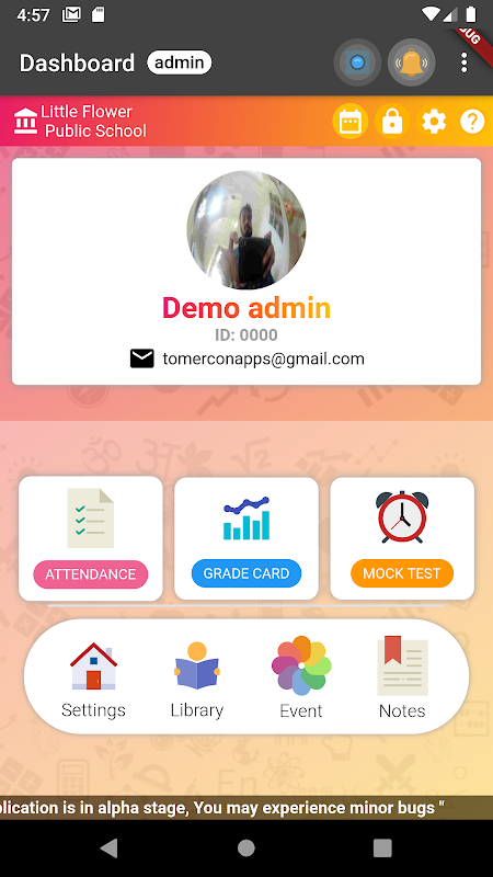 • Admin can add new students, teachers and set their permissions directly from the app