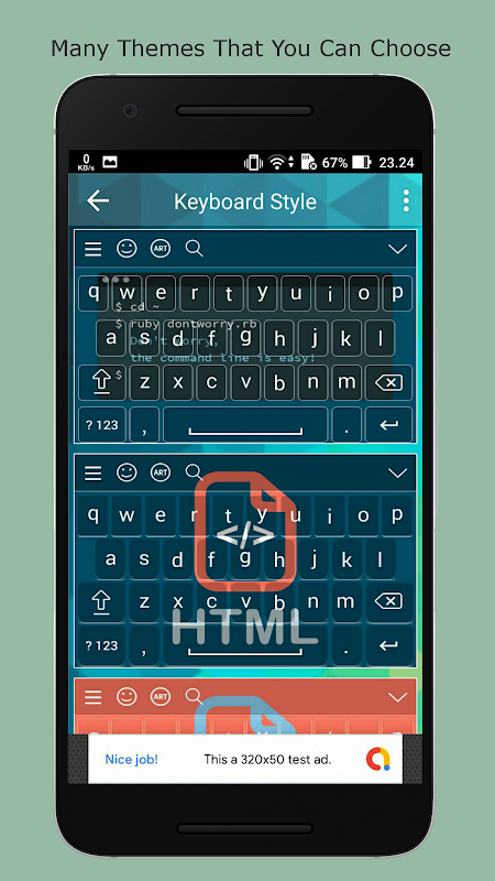 The best programmer keyboard ever. Programmer keyboard is suitable for those of you who like programming world. You can choose the country language you like. In the hacker keyboard you can also choose the type of font. On the hacker keyboard you can also choose the theme you like.