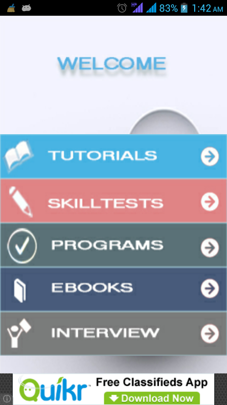 Programming Teacher is a app to learn programming in a easy way.Its like a programming teacher in your hand.By using this application it is very easy to learn programming and improve your programming skills in a very short period.You can also test your knowledge using test skills in different programming language.It covering almost every programming language including C,C++,Java,Android,C-sharp,PHP,HTML etc.The best features you can get full program code and also search a particular program from the list.