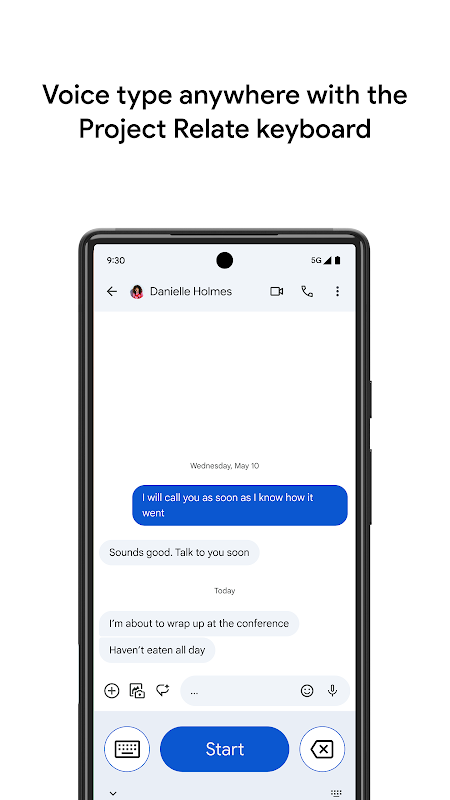 Setelah anda melengkapkan rakaman anda, Project Relate akan belajar memahami cara anda bercakap dengan lebih baik. Anda kemudiannya boleh menggunakan mod Dengar & Ulang dalam Project Relate untuk membantu lebih difahami oleh orang di sekeliling anda & papan kekunci Project Relate dalam semua Apl Android untuk menyalin mesej pendek & teks bentuk panjang anda.