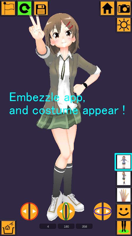 Anda boleh memindahkan Jepun gadis sekolah tinggi dalam pose kegemaran dan membuat gambar.
