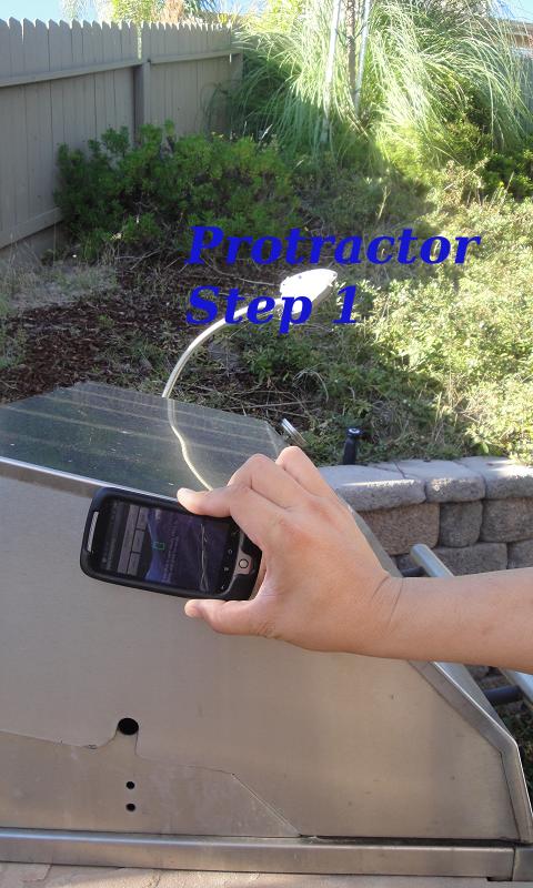 Step 2: Locate the second ray, and put the phone on it. The measured angle will be displayed in the unit of degrees. Assuming that in step 1 the phone is in a plane, in step 2, make sure that the phone is either in the same plane or in a parallel plane.