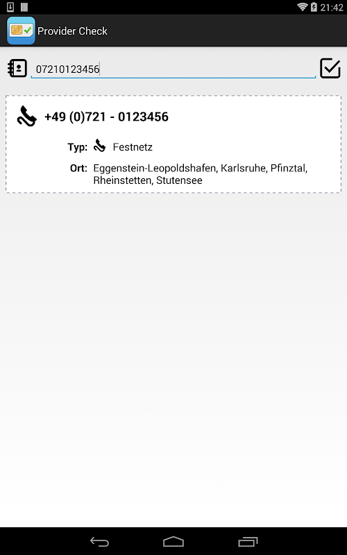 Aplikasi pembekal cek menjawab soalan-soalan ini dan menawarkan maklumat untuk talian tetap dan nombor antarabangsa.