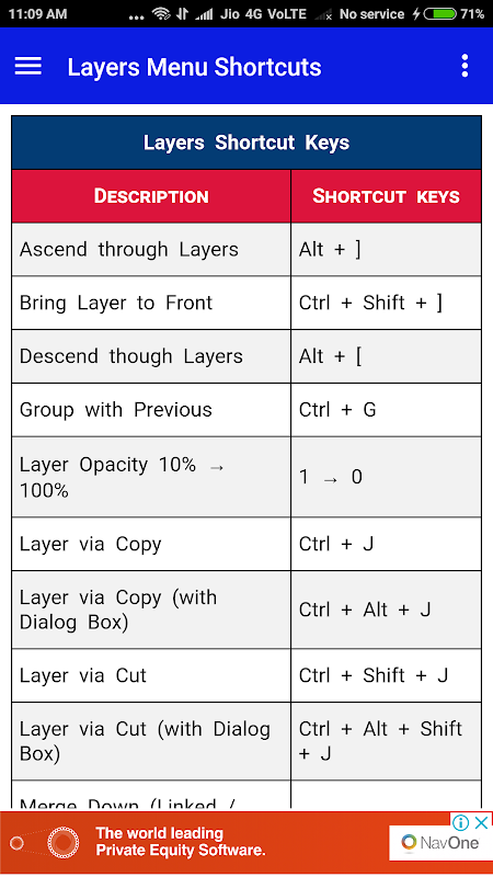 This psd key shortcut works in Photoshop for PC, good luck, happy learning. You can share this app to your friends and share the shortcut tricks. Thank you