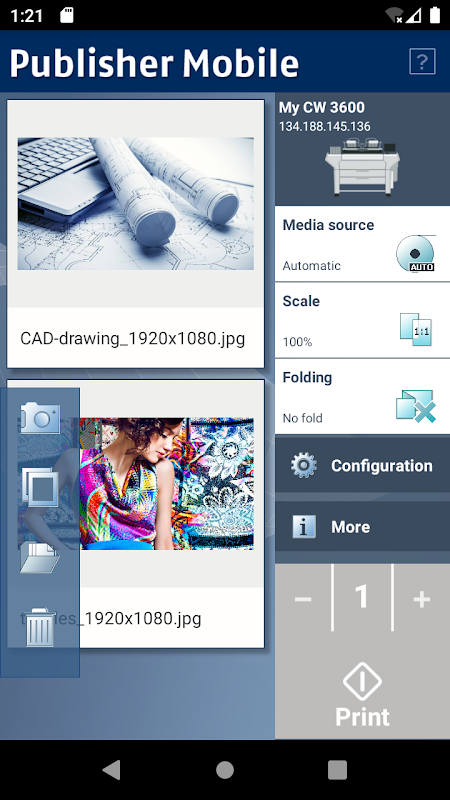 Dengan Publisher Mobile, anda boleh mencetak dokumen PDF, DWF, PLT (HP-GL, HP-GL / 2, HP RTL), JPG, dan TIFF ke lotre. Cetak semula dokumen anda, skala plot anda, akses tetapan utama, lihat barisan, media dan status dakwat / toner plotter anda pada bila-bila masa. Terdapat dalam 20 bahasa.