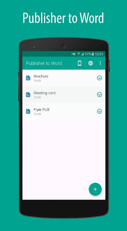 Tukar fail Penerbit Microsoft (.pub) anda ke dalam dokumen Word yang boleh diedit betul pada peranti Android anda atau Chromebook. Sesuai untuk apabila anda menerima penerbitan dalam format .pub dan tidak boleh membukanya. Mudah dan cepat tukar fail Penerbit dari mana-mana peranti anda, Dropbox, Google Drive, Peti dan OneDrive.