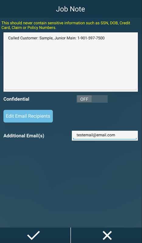 •Calling a number from the job screen will automatically generate a note documenting the call information
