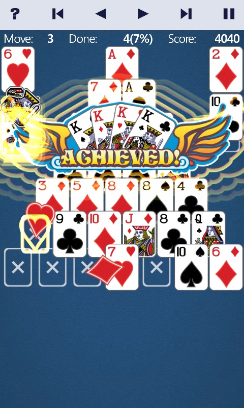 Anda hanya membuat kombinasi yang menambah sehingga 13 untuk membuang kad. Dengan grafik yang indah, animasi dan kesan bunyi, permainan kad piramid ini benar-benar adalah salah satu daripada permainan solitaire yang paling menyenangkan dan menyeronokkan pada Android.