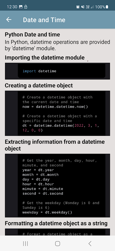 Selami dunia pengaturcaraan Python dengan aplikasi tutorial kami yang meluas, disesuaikan untuk pemula dan mereka yang ingin mengukuhkan pemahaman mereka tentang asas Python. Aplikasi ini ialah sumber komprehensif yang merangkumi setiap aspek pengaturcaraan Python secara berkaedah.