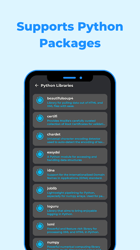 Alami kuasa pengekodan Python pada peranti mudah alih anda dengan Python IDE. Aplikasi berkelajuan tinggi ini memberikan hasil yang tepat dengan kecekapan yang luar biasa. Antara muka penggunanya yang rapi dan intuitif memastikan pengalaman pengekodan yang lancar, siang atau malam.