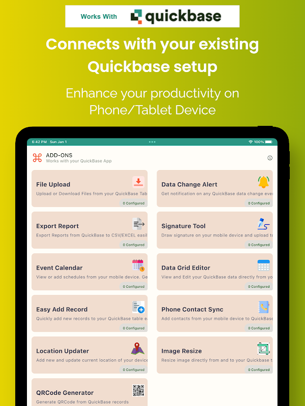 Sekarang buat kod QR dari dengan hanya ketik butang dan muat naik imej kod QR ke Quickbase menggunakan alat tambah/plugin ini. Konfigurasikan alat tambah dengan mudah menggunakan wizard konfigurasi DIY.