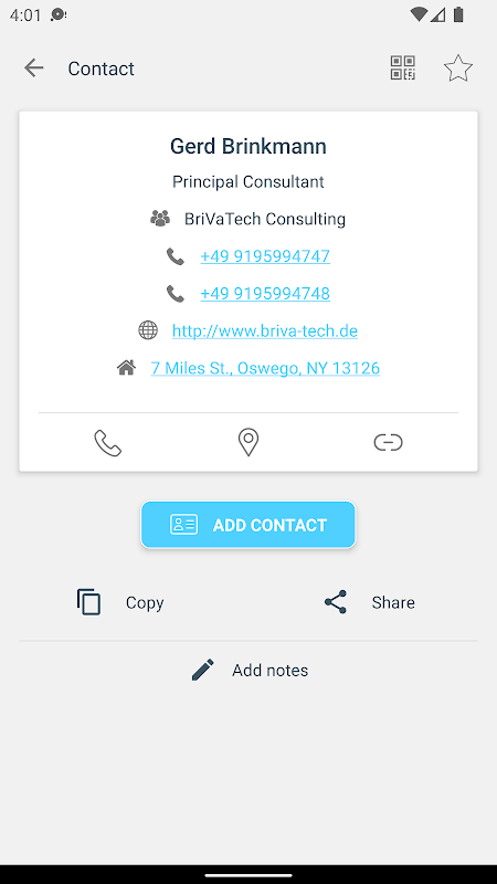 With each QR code or barcode scanned, the app will effectively instruct you with relevant actions to make sure you get the job done as fas as possible, with no hassle: open links (URLs), connect to WiFi hotspots, add calendar events, add contact book, find product and price information, etc.