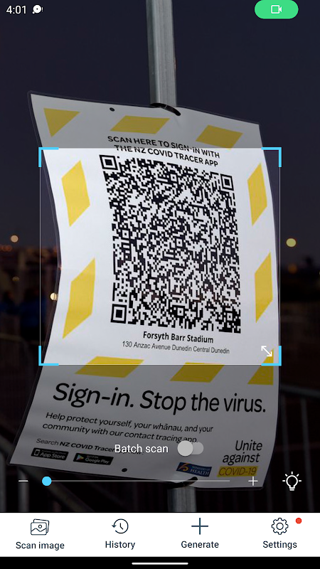 Scan QR codes and barcodes in low-light conditions with the flashlight support.