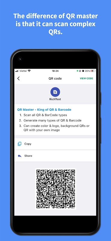 Hai ! QR Master ialah aplikasi terkemuka dalam mengimbas dan menjana kod QR, Kod Bar, UPC dengan ciri tersendiri dan cemerlang seperti membaca dan mencipta kod QR yang cantik atau kompleks.