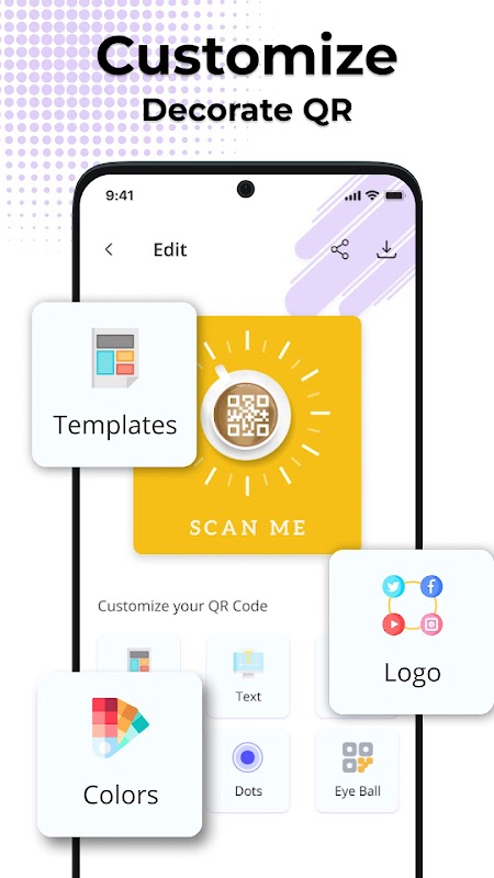 Pengimbasan pantas, tepat dan QR & kod bar tersuai. Imbas dan kongsi dengan mudah.