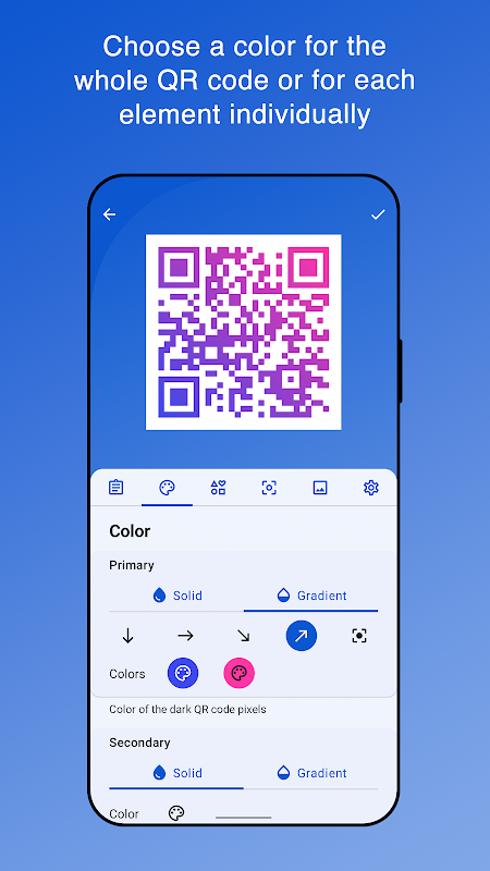 - Pilih warna dan bentuk untuk setiap bahagian kod QR