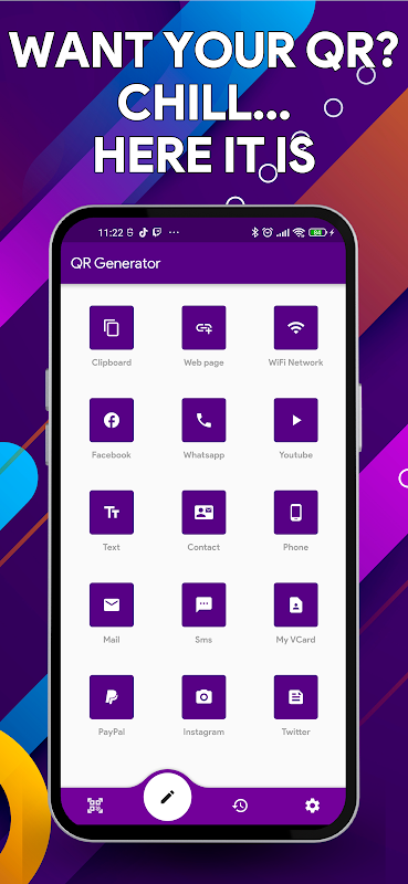 Dalam bahagian penciptaan kod QR, anda boleh membuat kod anda sendiri untuk: