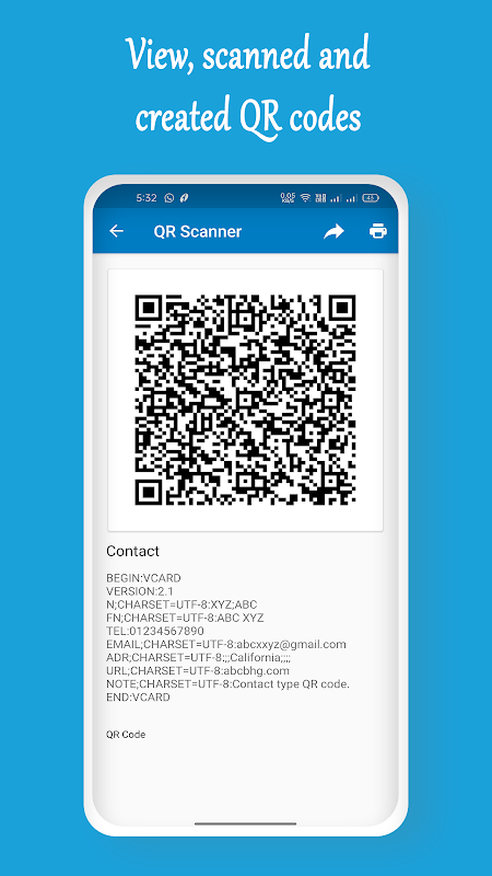 Pemindai QR & Kode Batang dapat membaca dan memecahkan kode semua jenis kode QR dan kode batang, termasuk kontak, produk, URL, Wi-Fi, teks, buku, E-mail, lokasi, kalender, dll.