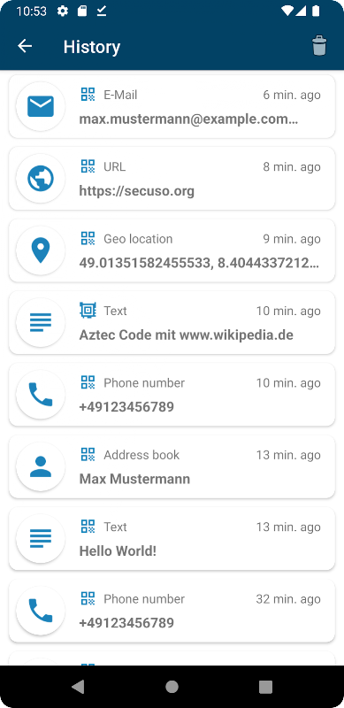 Kod QR menjadi lebih penting. Di sesetengah kawasan mereka malah telah menggantikan kod bar tradisional. Kod QR mampu menyimpan sehingga tujuh ribu aksara dan oleh itu layak untuk kandungan yang lebih kompleks, mis. vKad. Oleh itu pada masa kini Kod QR boleh didapati pada hampir setiap poster iklan dan menghidupkan pengguna untuk mengimbasnya dengan telefon pintarnya. Oleh itu, tidak perlu lagi mengambil nota bertulis tangan, cukup untuk mengimbas Kod QR. Sejajar dengan itu, sudah terdapat banyak aplikasi pengimbas Kod QR tersedia di Gedung Google Play. Ia tergolong dalam kumpulan Aplikasi Mesra Privasi yang dibangunkan oleh kumpulan penyelidikan SECUSO di Technische Universität Darmstadt. Maklumat lanjut boleh didapati di secuso.org/pfa
