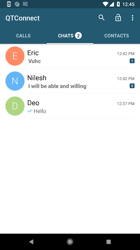 QTConnect (QT Messenger) Komunikasi selamat hujung ke hujung untuk suara, pemesejan dan sembang kumpulan pada telefon pintar setiap hari.