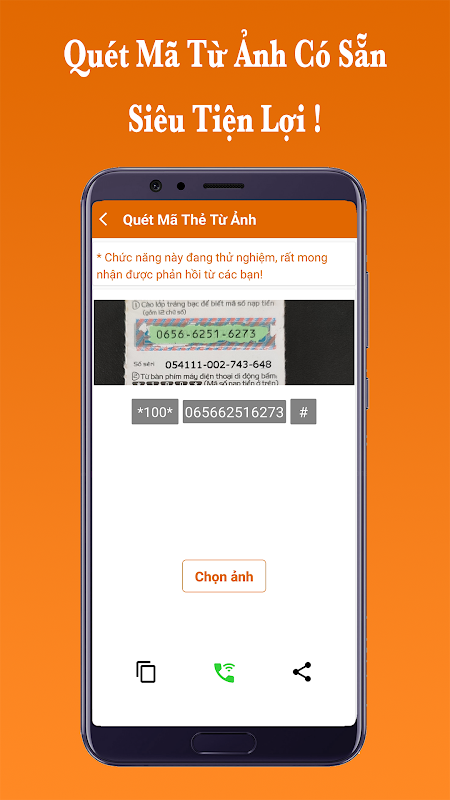 Dengan aplikasi Pengimbas Kod Kad Mobifone - Pemuatan Kad Mobifone, anda tidak perlu memerah mata untuk membaca nombor yang tercetak pada kad calar dan kemudian memasukkannya secara manual, sebaliknya anda hanya perlu membuka aplikasi tersebut, masukkan kamera ke dalam. kawasan yang mengandungi kod kad, aplikasi akan mengimbas kod secara automatik dan memaparkan hasilnya, anda boleh membetulkannya sepenuhnya jika aplikasi itu salah (kadar ralat sangat rendah), atau memilih untuk mengimbas semula jika anda mahu.