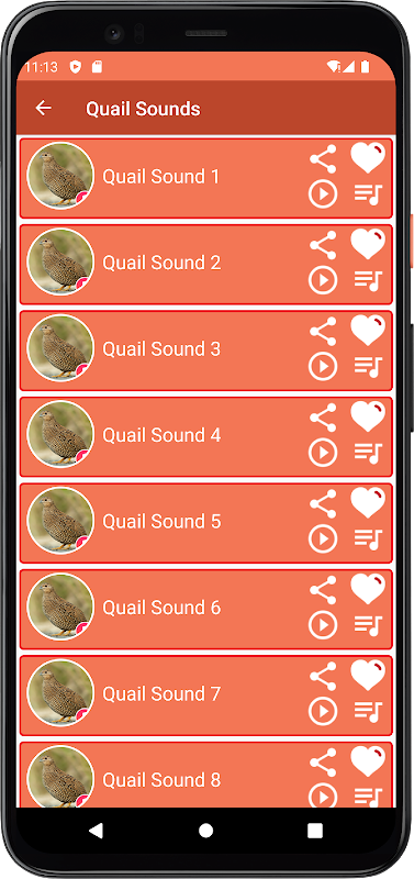 This application containing the best collection of quail sounds for android devices. Sounds have been selected very carefully to be a good and fun user experience, we hope you will enjoy using the app and listening to quail sounds.