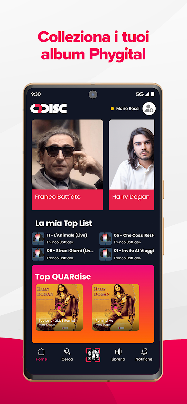 Aplikasi ini membolehkan anda mendengar salinan peribadi anda bagi muzik pada QUARdisc fizikal, mengimbas kod QR unik yang dilampirkan.