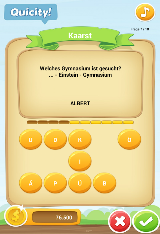 In diesem Spiel können Fragen zu Städten in ganz Deutschland gestellt und von anderen Spielern beantwortet werden. Je schneller die Fragen zu der ausgewählten Stadt beantwortet werden, desto mehr Punkte erhält der Spieler auf sein Konto. Die Punkte werden pro Runde aufsummiert und in einer Highscore-Liste mit anderen Spielern geteilt.