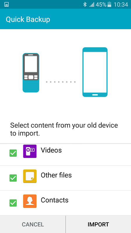 Quick Backup application for seamless transfer from feature to android phone