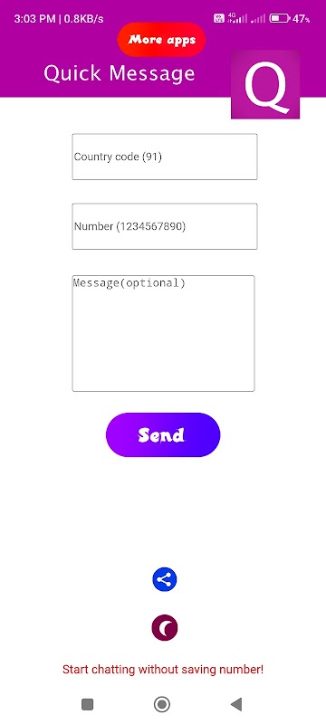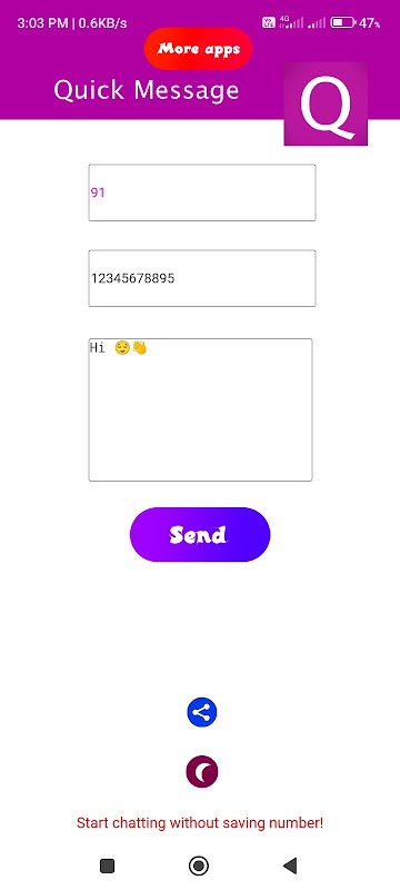 Kini tidak perlu menyimpan kenalan untuk memulakan mesej baharu. Hanya buka aplikasi ini dan masukkan nombor telefon dan mesej kemudian tekan hantar.