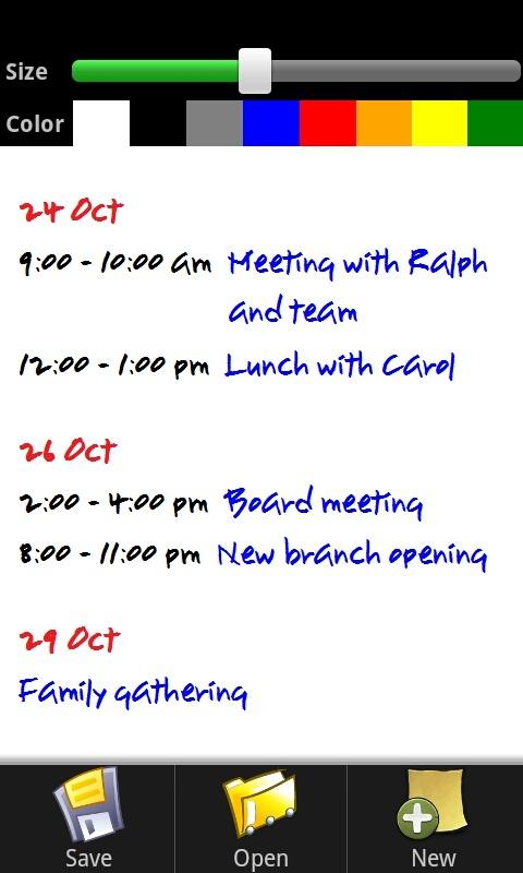 No need to type down your notes anymore. Create freehand notes on the fly with different colors and font sizes. Easily preview, modify and share notes with your friends over Bluetooth and through the various applications on your device.