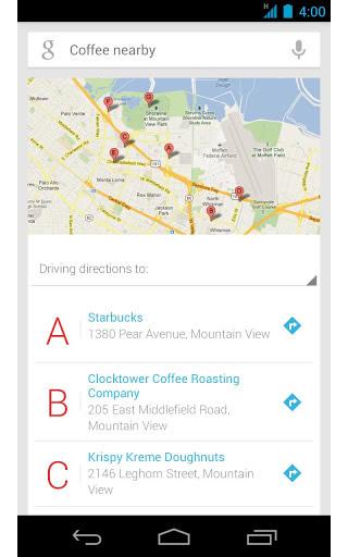 Google Now gets you just the right information at just the right time. It tells you today’s weather before you start your day, how much traffic to expect before you leave for work, and more (Google Now is currently available on Android 4.1, Jelly Bean).