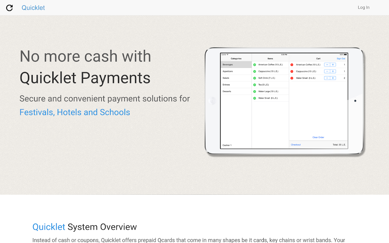 Quicklet is a prepaid payment solution. The user can charge an RFID card or his application with cash. He can then pay easily and conveniently at various locations using this easy to use point of sale system.