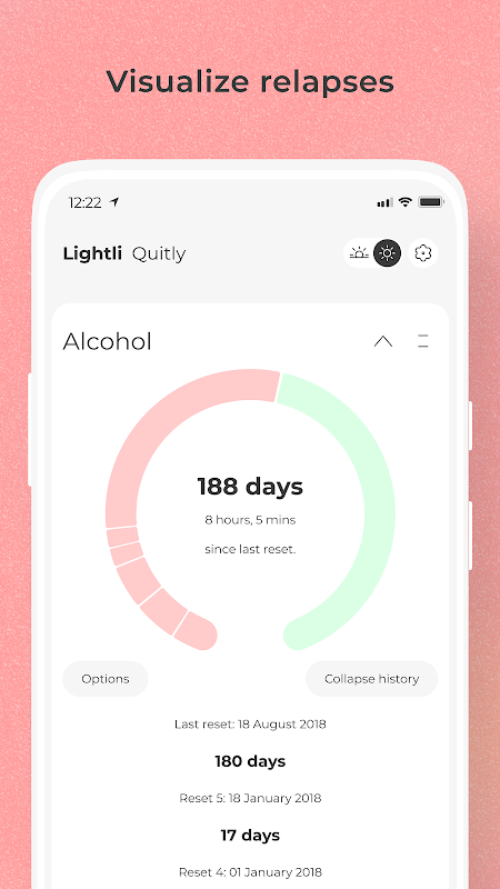 Jejaki perjalanan anda dengan tepat. Lihat semua kambuh untuk memahami corak, tetapkan matlamat sasaran untuk kekal bermotivasi dan terima pemberitahuan apabila anda mencapai peristiwa penting yang penting. Paparan pemasa boleh lipat memastikan papan pemuka anda teratur sambil menjejaki berbilang tabiat.